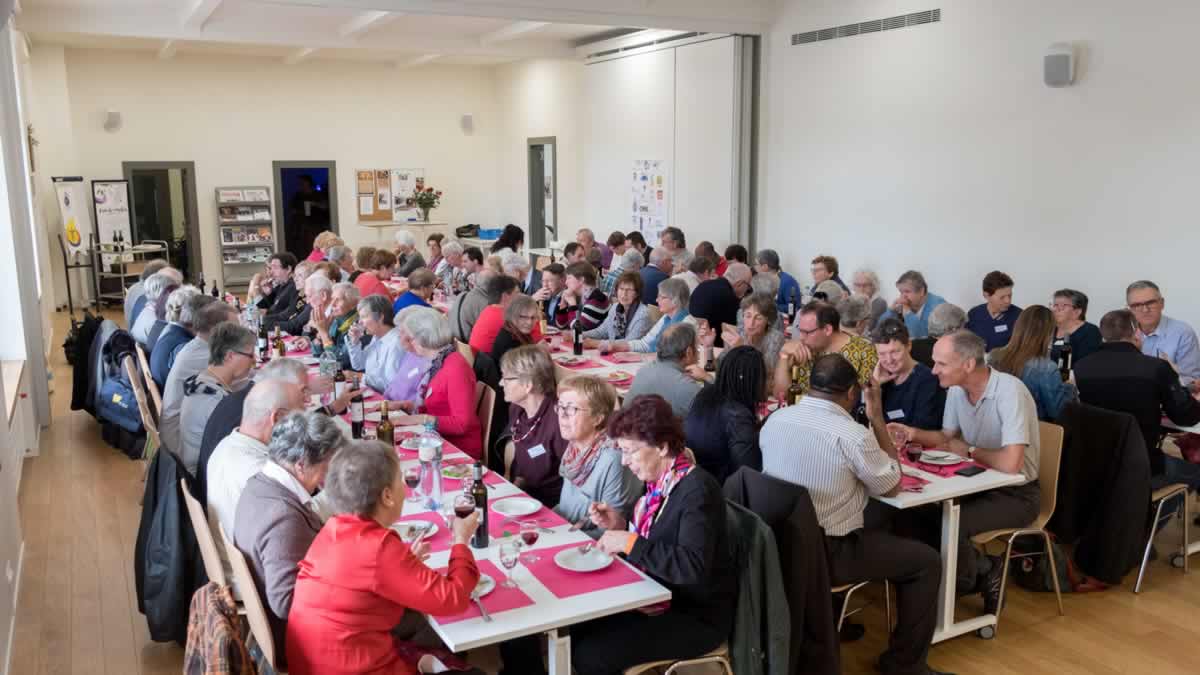 La Communauté Romande de l’Apostolat des Laïcs a donc fêté son 50e anniversaire : une telle joie devait se partager ! Une centaine d’invités – membres de mouvements pour la plupart – ont répondu présent pour célébrer ensemble ce Jubilé d’Or qui s’inscrivait dans le cadre de l’événement romand Prier Témoigner 2018.